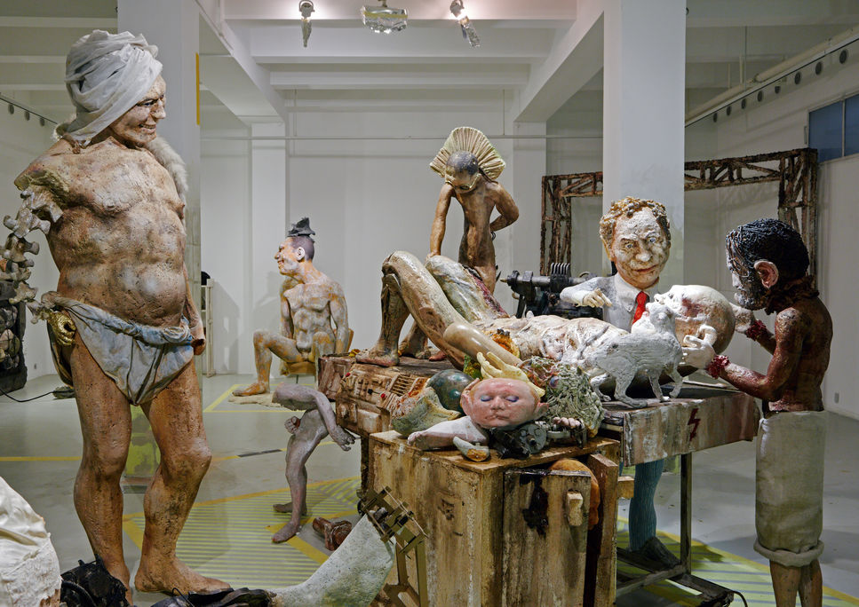 "Barna Péli as a sculptor is highly committed to anthropocentrism, where his composition of figures as active, ethical agents are always articulated in relation to interpersonal nexus or group dynamics. The body horror-esque aesthetics represents the power situation within these relations, which in an absence of a well-designed surface unveil the ugliness of reality as it is."